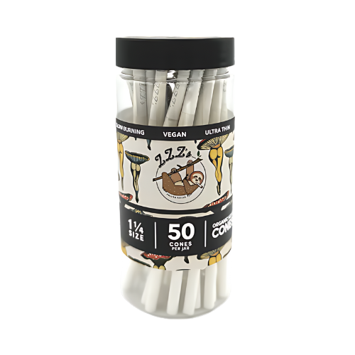 ZZZ’s unbleached organic hemp cones are made from natural fibers, ensuring a slow, even burn that enhances your experience. These hemp rolling papers are ultra-thin, allowing you to savor the true essence of your favorite dry herbs. The packaging art features “Shroom Booties” by Ceci Granata.